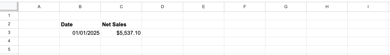 Step 5: Add your shipping cost for yesterday’s orders to your sheet in cell F3: