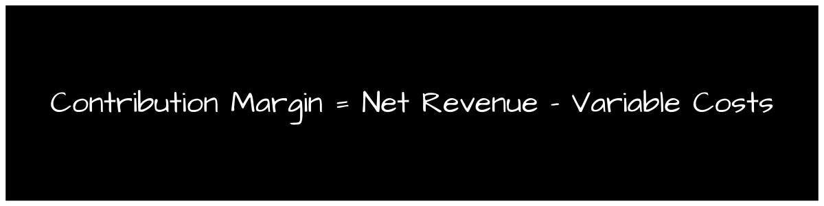 To calculate contribution margin we need to take our net revenue and subtract our variable costs.